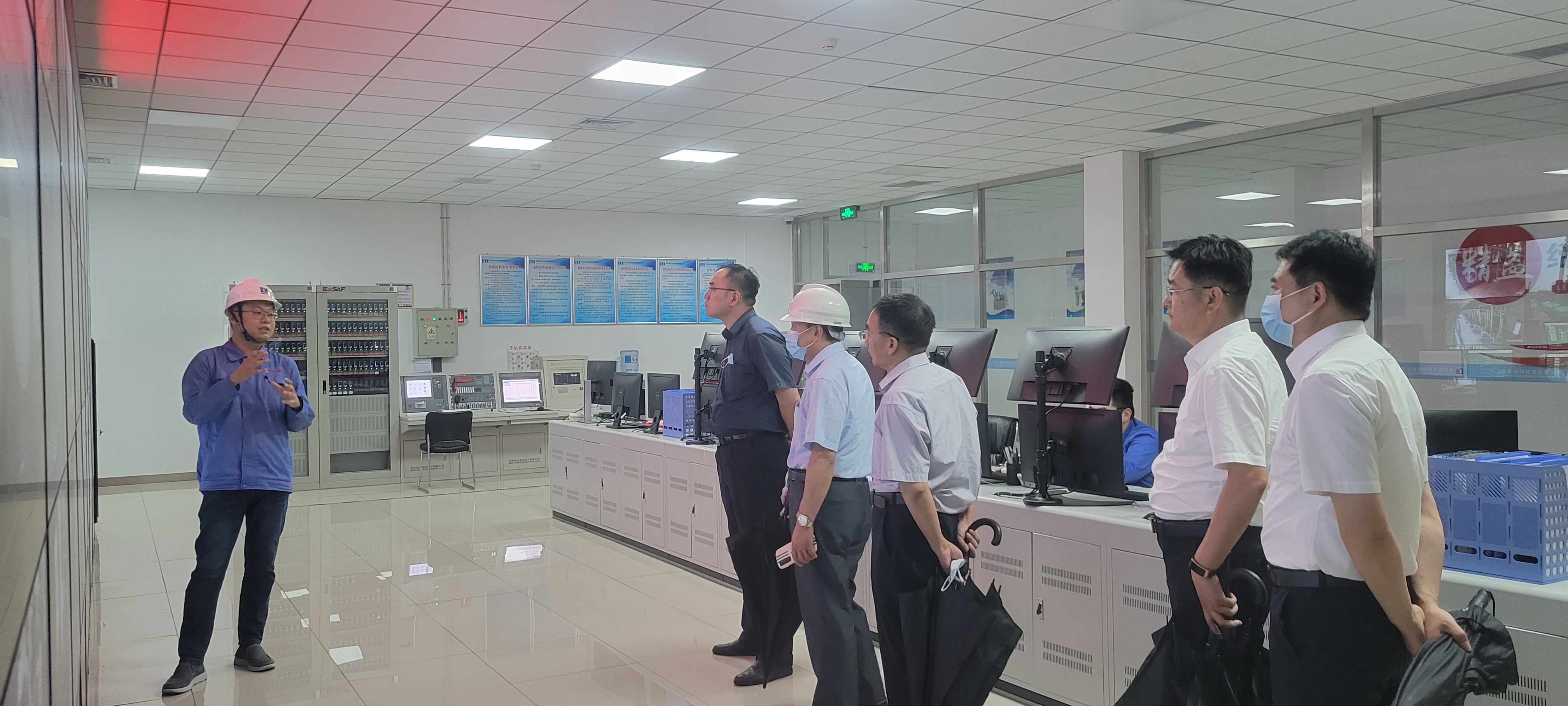 任寧一行首先對公司研發樓、中控室以及成品倉進行參觀,并聽取了生產、經營等方面的情況介紹。